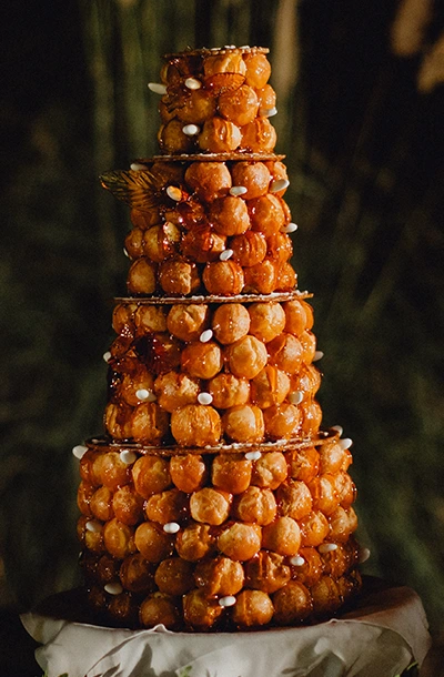 Les pièces montées de choux privilégient les lignes épurées et les finitions à la feuille d’or pour une élégance intemporelle.