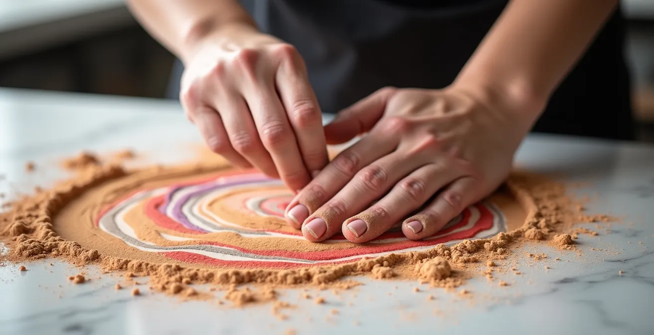 Mais si la véritable clé n’était pas de chercher plus d’idées de gâteaux, mais plutôt de changer radicalement sa manière de regarder le monde ? La créativité la plus puissante ne naît pas de l’imitation, mais de la traduction sensorielle. Il s’agit d’un processus mental où vous apprenez à transformer une émotion, une couleur vue dans un musée, une texture touchée dans un jardin ou une forme architecturale en une composition de saveurs, de volumes et de sensations en bouche. C’est le secret des directeurs de création : ils ne cherchent pas l’inspiration, ils la construisent.