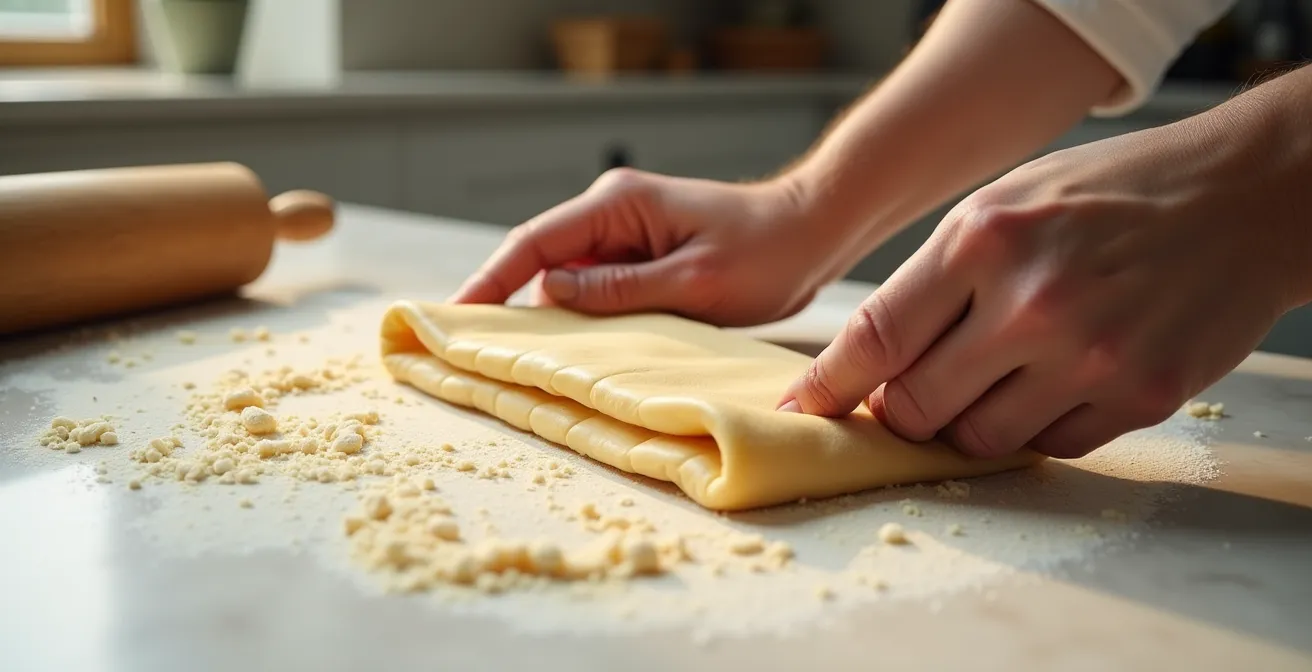 - Collecte des signaux : Si le beurre suinte en petites perles lors de l’abaisse, il est trop chaud. Replacez immédiatement le pâton au frais pour 15 minutes.