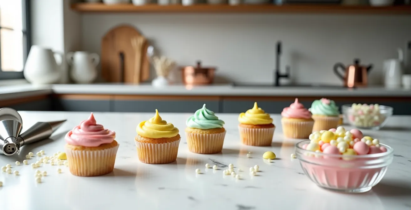 Mais si le secret ne résidait pas dans une décoration surchargée, mais dans la maîtrise de quelques gestes précis qui transforment un simple muffin en une petite pâtisserie élégante ? La différence entre un goûter d’enfant et un dessert de fête se joue sur des détails qui relèvent moins de la recette que de la technique. C’est une véritable petite alchimie où la température, la texture et l’architecture du glaçage deviennent vos meilleurs alliés. Oubliez les recettes complexes et les heures passées en cuisine ; l’astuce est de travailler intelligemment, pas plus durement.